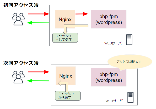 キャッシュを使う事で高速になるばかりか、wordpressへアクセスが行かない事で当然データベースなどの検索も走らなくなりサーバー負荷も軽減されます。