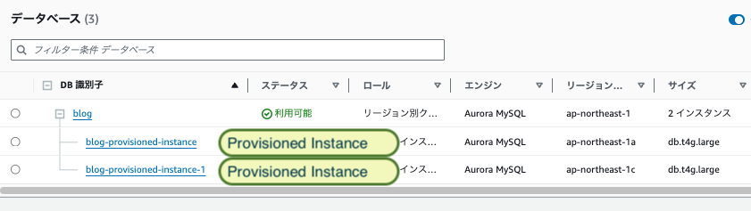 - 既存のProvisioned Instanceがフェールオーバー先とする。