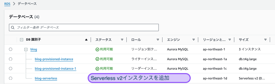 - 追加のServerless v2インスタンスはあくまでアクセス増対応のためのReaderスケーリング用途。