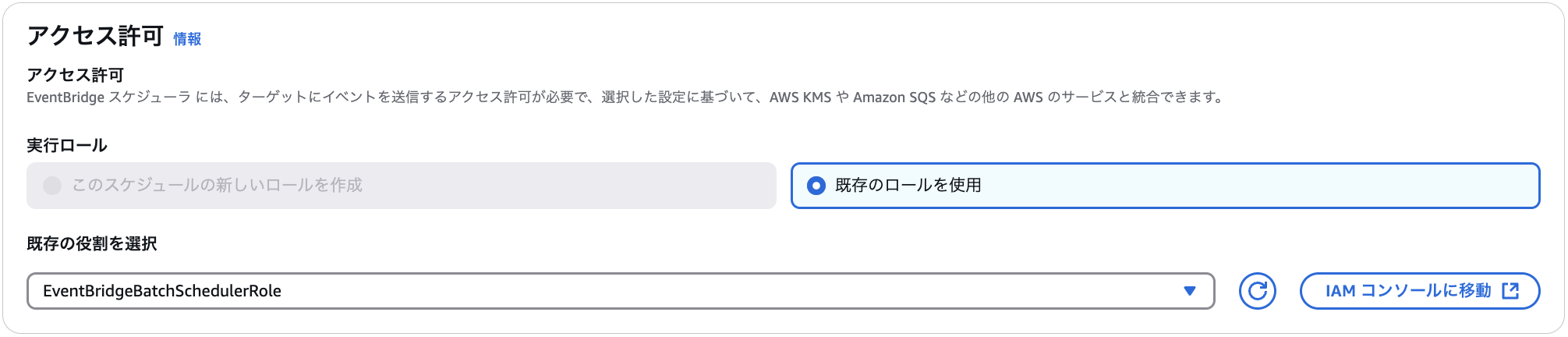 EventBridge Schedulerで使用する新しいIAMロールを作成します。