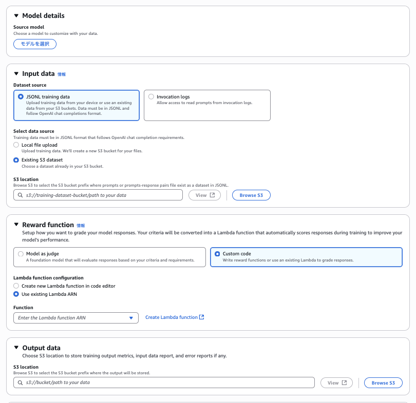 Amazon Bedrock の Reinforcement Fine-tuning では、報酬関数に、Model as judgeとCustom codeを利用できます。