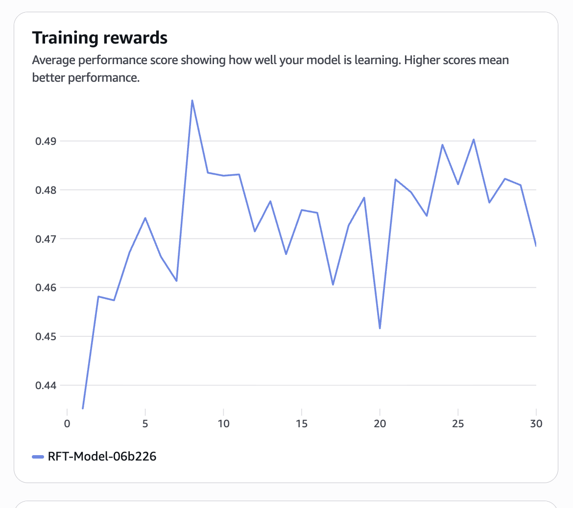 Amazon Bedrock の Reinforcement Fine-tuning(RFT)を「no PhD required」という言葉通り、手軽に試すことができました。