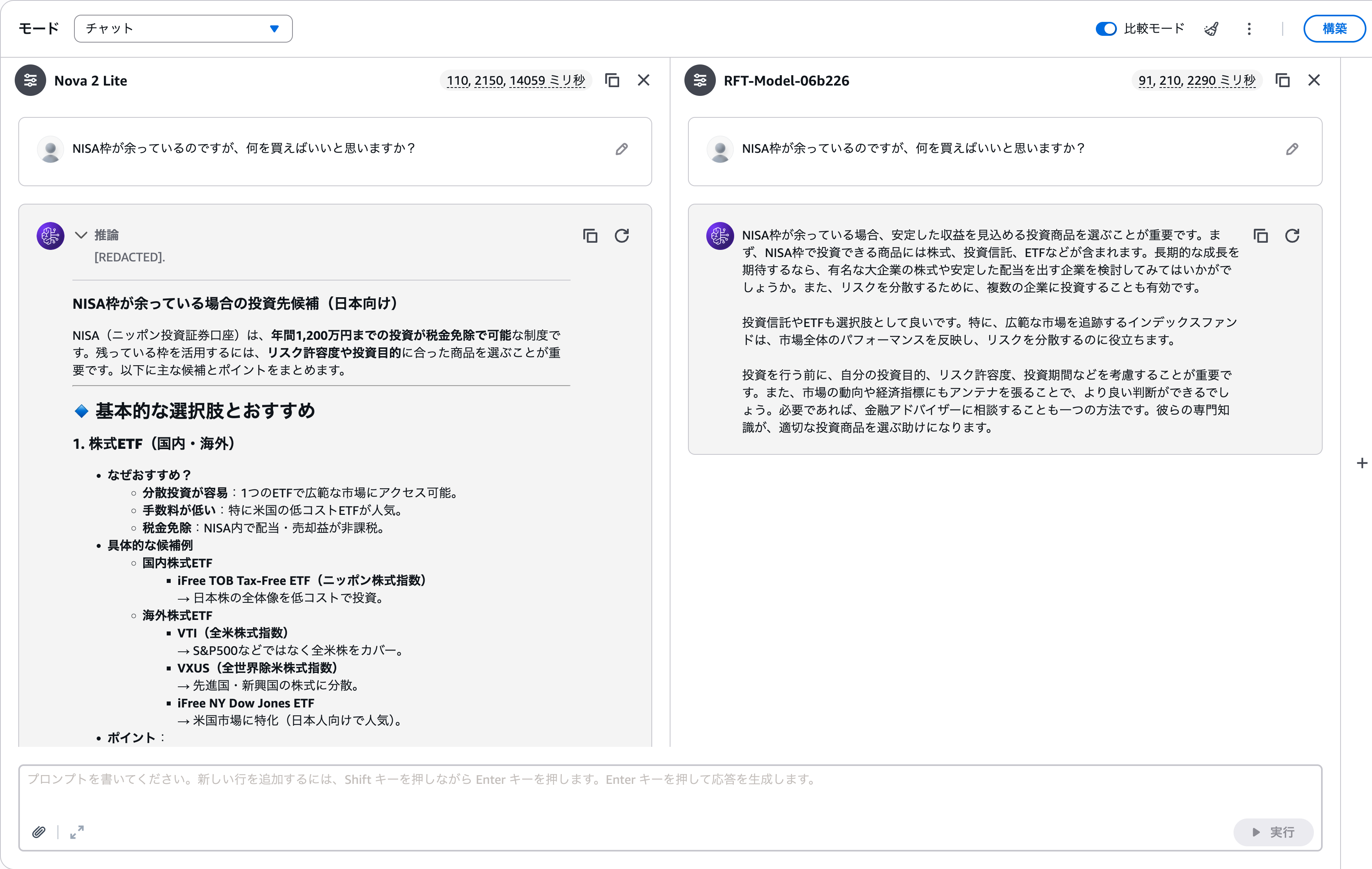学習前のNova 2 LiteとRFT後のNova 2 Liteで比較します。