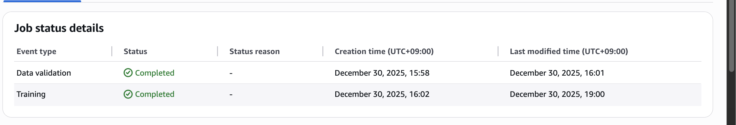 ジョブの作成が完了しました。ジョブの完了まで2時間から24時間かかるようです。(ハイパーパラメーター次第かと思われます)