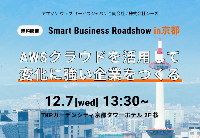 この度、株式会社シーズは、2022年12月7日(水)に「AWS Smart Business Roadshow in 京都」を開催することが決定しましたので宣伝させていただきます!