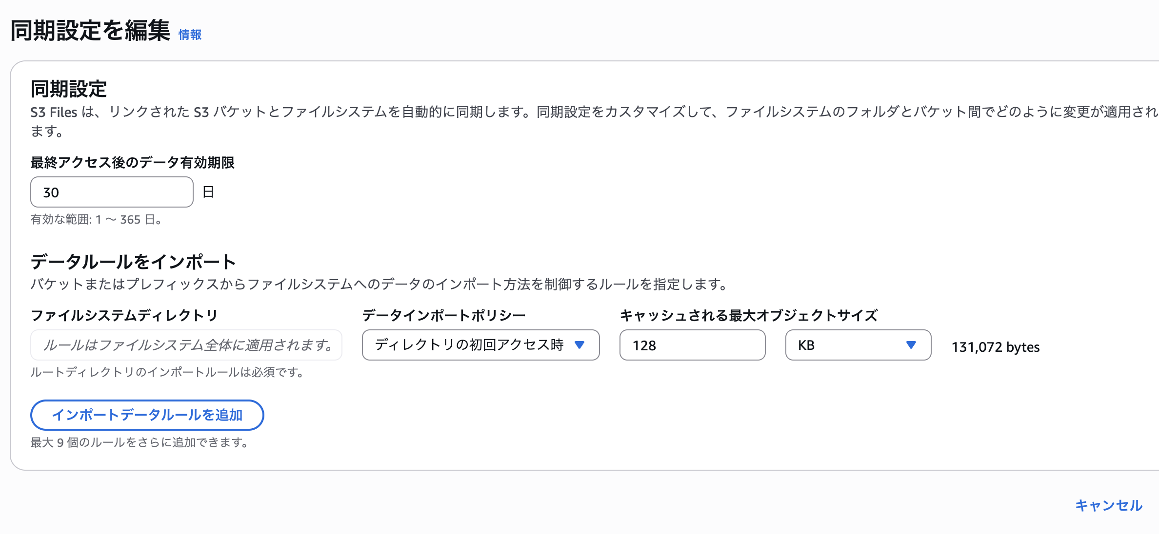 ただ、S3 Files では、「同期の設定」 により、どのデータをハイパフォーマンスストレージに取り込むか、また未使用データをどのくらいの期間保持するかを調整できます。